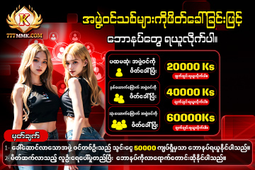 အွန်လိုင်းဖျော်ဖြေရေးကာစီနို https://www.777mmk.net တွင် သွင်းငွေ 3000ks ဖရီးဘောနပ်စ် 9000ks ရယူလိုက်ပါ ၊ စလော့ဂိမ်း၊ ငါးဖမ်းဂိမ်း၊ လူအစစ်များ၊ အားကစား၊ အမြန်ငွေသွင်းခြင်းနှင့် ငွေထုတ်ခြင်းဖြစ်သည့်အတွက်၊ ပမာဏများပြားခြင်းကို စိတ်ပူစရာမလိုဘဲ ယုံကြည်စိတ်ချစွာ 100% ဘေးကင်းပါသည်။